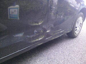 左フロントドア・左リヤドアは交換、左リヤアウトサイドパネルは修理の対応となりました。