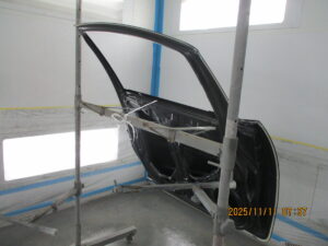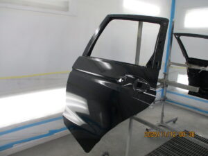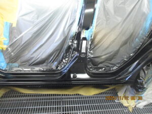 左リヤアウトサイドパネルの修理後、フロントドア・リアドアの素地部品と修理箇所の塗装していきました。