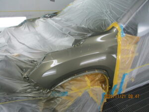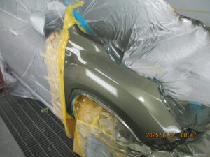 乾燥後は、フロントバンパー・右ヘッドライトの交換と組み付け、仕上げ研磨を行いお客様へご納車となります。