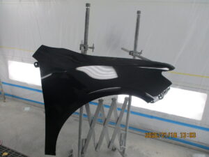 フロントバンパーと右ヘッドライトを外して、右フェンダーパネルの素地部品の塗装をしていきました。