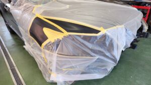 修理後、フェンダーパネルの塗装をしていきました。