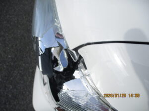 フロントバンパー・左ヘッドランプ・左フェンダーパネルは交換、ボンネットは修理の対応となりました。