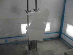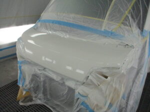 修理後は、左フェンダーパネルの塗装と、ボンネットの修理箇所の塗装をしていきました。