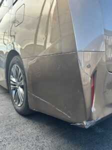 修理後は、左クォーターパネルの塗装をしていきました。左スライドドアはぼかしパネルとなりました。