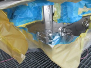 左テールランプとリヤバンパーを外して、左クォーターパネルの修理をしていきました。