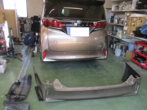 リヤバンパーは交換、左クォーターパネルは修理の対応となりました。