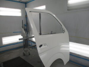 修理後、右フロントドアの素地部品と右フェンダーパネル、右スライドドアの塗装をしていきました。