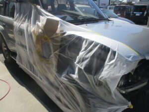 作業後、右フェンダーパネルと修理箇所の塗装をしていきました。