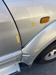 右フェンダーパネルは交換、右フロントドアは修理の対応となりました。