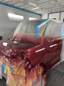 修理後、ボンネットと左右フェンダーパネルの塗装をしていきました。
